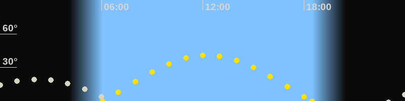 Höchster Sonnenstand (Kulmination)12:16 Uhr (h = 41.1°)