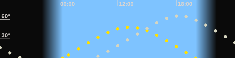 Höchster Sonnenstand (Kulmination)13:11 Uhr (h = 48°)