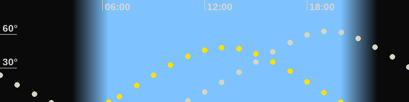 | Sonnenaufgang | 06:22 Uhr im Osten (αAz = 75.1°) |