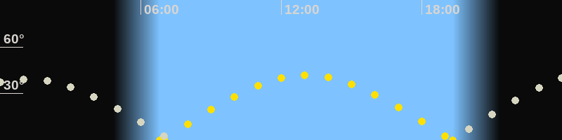 Höchster Sonnenstand (Kulmination)13:05 Uhr (h = 41.9°)