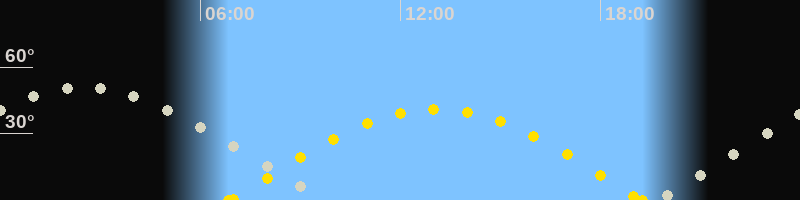 Höchster Sonnenstand (Kulmination)13:04 Uhr (h = 41.1°)