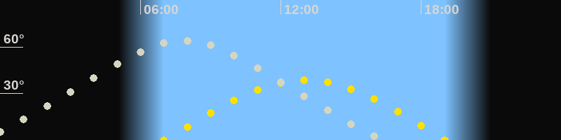Höchster Stand (Kulmination)07:49 Uhr (h=64.3°)