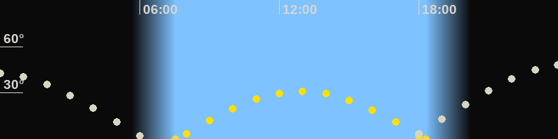 | Höchster Sonnenstand (Kulmination) | 12:56 Uhr (h = 31.1°) |