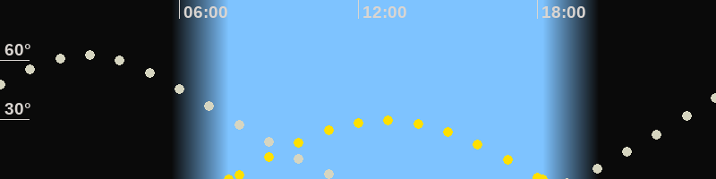Höchster Sonnenstand (Kulmination)12:55 Uhr (h = 29.6°)