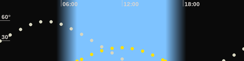 | Höchster Sonnenstand (Kulmination) | 11:55 Uhr (h = 19.8°) |