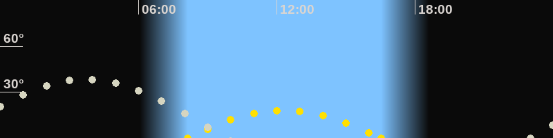 | Höchster Sonnenstand (Kulmination) | 12:19 Uhr (h = 18.3°) |