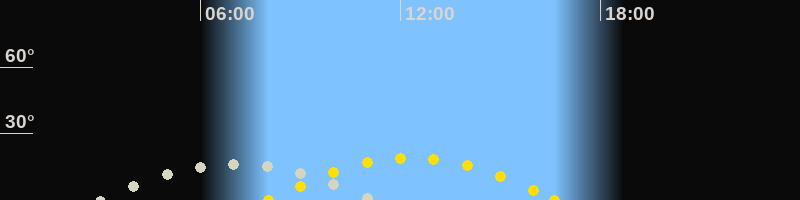 | Höchster Sonnenstand (Kulmination) | 12:21 Uhr (h = 19.1°) |