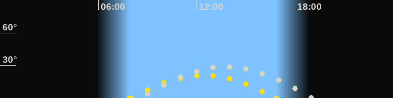 | Höchster Stand (Kulmination) | 13:40 Uhr (h=28.7°) |