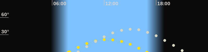 | Höchster Sonnenstand (Kulmination) | 12:23 Uhr (h = 21.6°) |