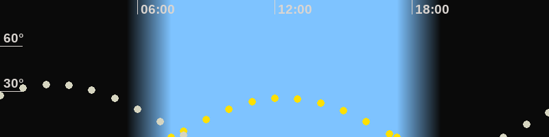 | Höchster Sonnenstand (Kulmination) | 12:24 Uhr (h = 25.9°) |