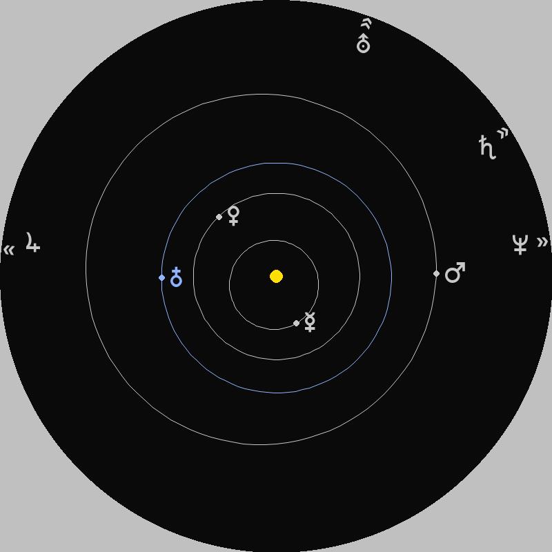 f Merkur g Venus l Erde h Mars j Jupiter S Saturn A Uranus G Neptun
