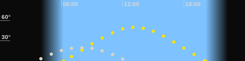 Sonnenaufgang06:12 Uhr im Osten (αAz = 72.3°)