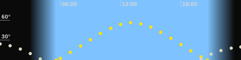 | Höchster Sonnenstand (Kulmination) | 13:06 Uhr (h = 56.3°) |