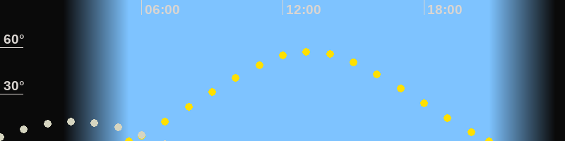 | Sonnenaufgang | 05:28 Uhr im Nordosten (αAz = 60°) |