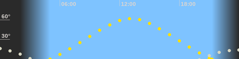 | Höchster Sonnenstand (Kulmination) | 13:08 Uhr (h = 61.9°) |