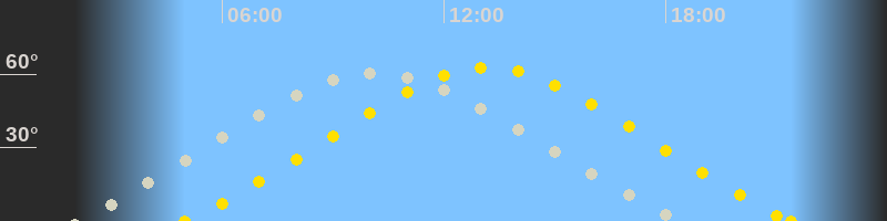 Höchster Sonnenstand (Kulmination)13:11 Uhr (h = 62.7°)