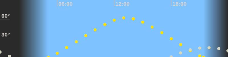 | Höchster Sonnenstand (Kulmination) | 13:14 Uhr (h = 62.2°) |