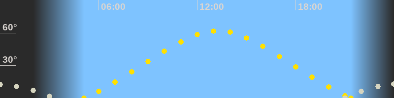 | Höchster Sonnenstand (Kulmination) | 13:14 Uhr (h = 62°) |