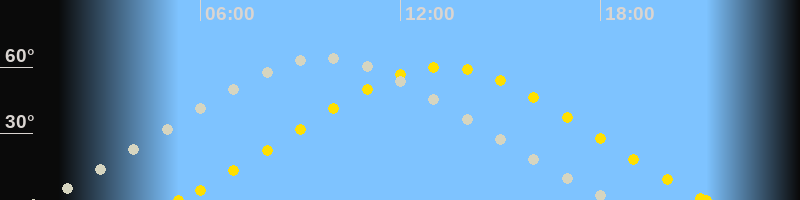 | Höchster Sonnenstand (Kulmination) | 13:16 Uhr (h = 60.1°) |