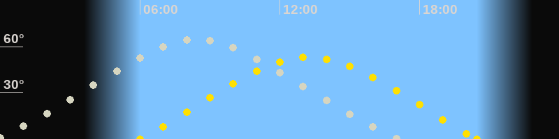 Höchster Stand (Kulmination)08:22 Uhr (h=64.6°)
