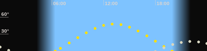 | Höchster Sonnenstand (Kulmination) | 13:10 Uhr (h = 48°) |