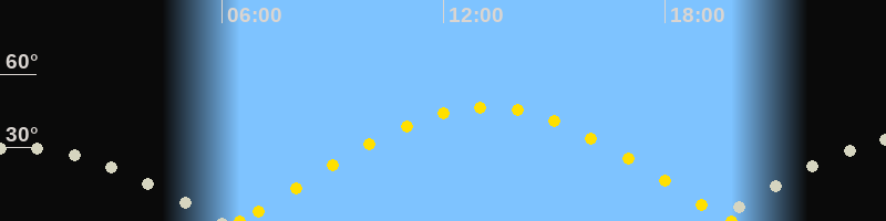 | Höchster Sonnenstand (Kulmination) | 13:09 Uhr (h = 46.5°) |