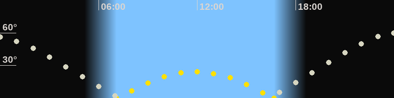 | Höchster Sonnenstand (Kulmination) | 11:53 Uhr (h = 24.3°) |