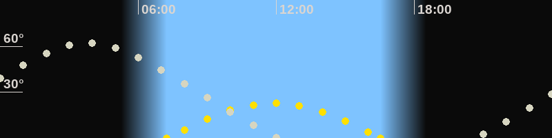 Höchster Sonnenstand (Kulmination)11:54 Uhr (h = 22.8°)