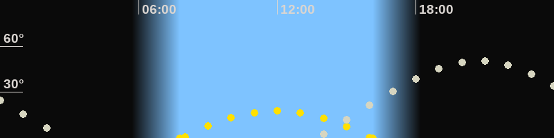 | Höchster Sonnenstand (Kulmination) | 11:58 Uhr (h = 18°) |