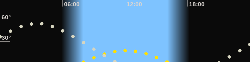 | Höchster Sonnenstand (Kulmination) | 12:01 Uhr (h = 16.7°) |