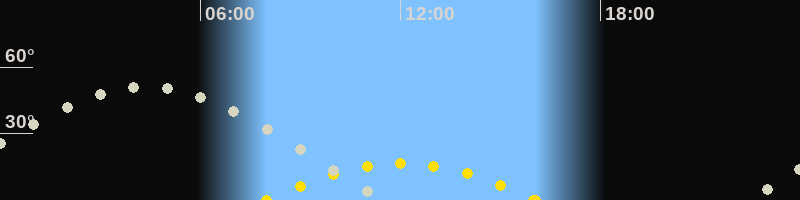 Höchster Sonnenstand (Kulmination)12:01 Uhr (h = 16.6°)