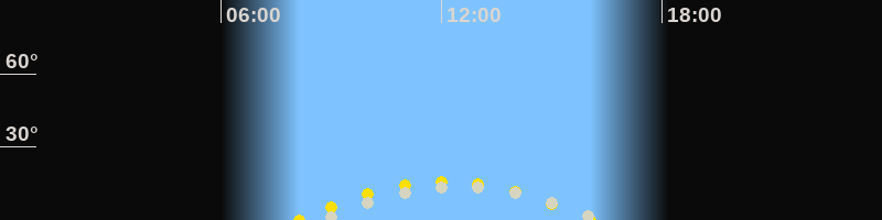 | Höchster Sonnenstand (Kulmination) | 12:06 Uhr (h = 15.9°) |