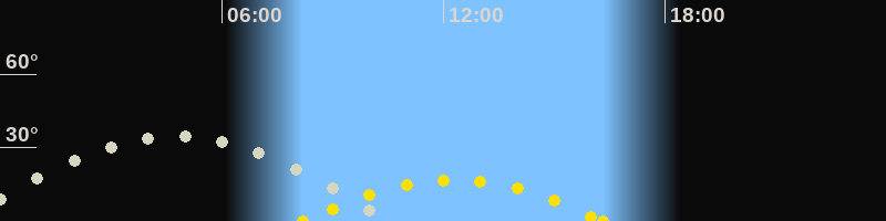 | Höchster Sonnenstand (Kulmination) | 12:16 Uhr (h = 16.9°) |