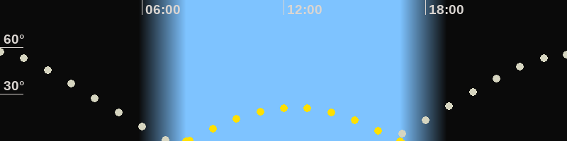 Höchster Sonnenstand (Kulmination)12:23 Uhr (h = 21.5°)