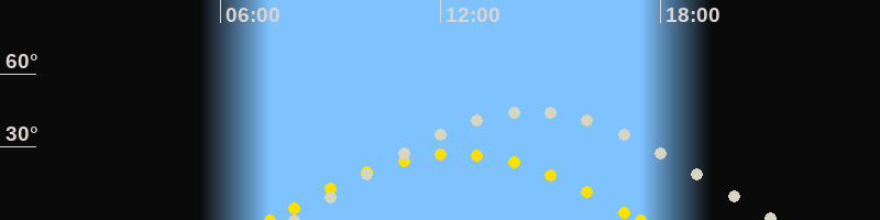 | Höchster Stand (Kulmination) | 14:24 Uhr (h=44.3°) |