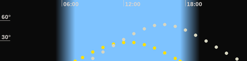| Sonnenuntergang | 17:30 Uhr im Westen (αAz = 252.6°) |