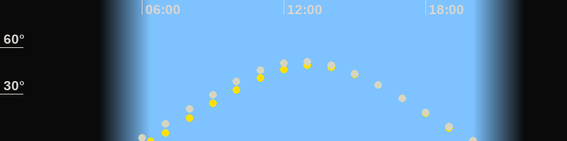 Höchster Sonnenstand (Kulmination)13:10 Uhr (h = 48.5°)