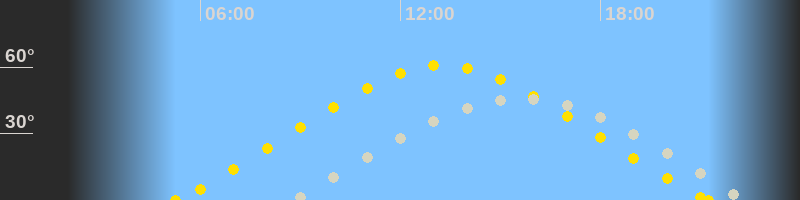 | Höchster Sonnenstand (Kulmination) | 13:16 Uhr (h = 60.9°) |