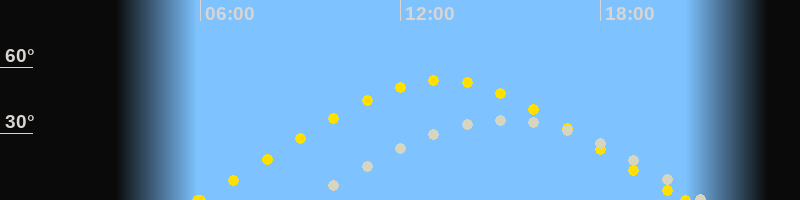 | Höchster Sonnenstand (Kulmination) | 13:15 Uhr (h = 54.1°) |