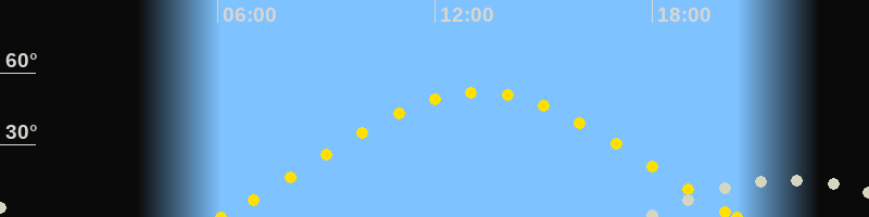 | Sonnenaufgang | 06:05 Uhr im Osten (αAz = 69°) |