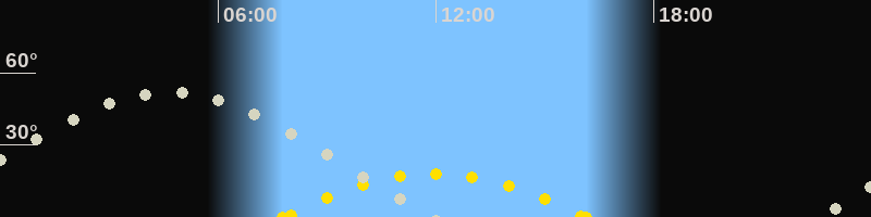 | Höchster Sonnenstand (Kulmination) | 11:57 Uhr (h = 18°) |
