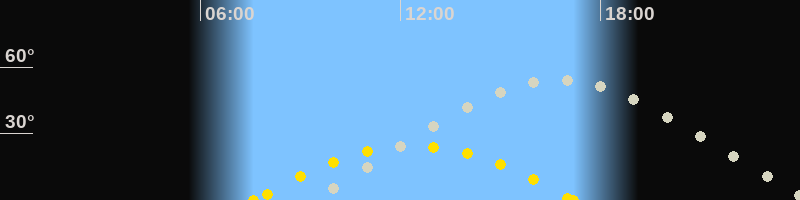 | Höchster Stand (Kulmination) | 16:40 Uhr (h=54.1°) |