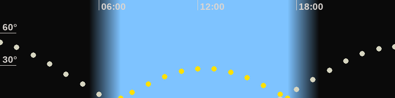 | Höchster Sonnenstand (Kulmination) | 12:24 Uhr (h = 27.4°) |