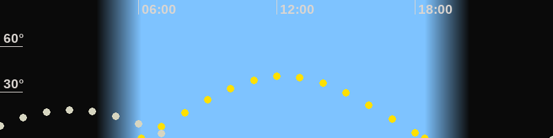 Höchster Sonnenstand (Kulmination)12:16 Uhr (h = 40.4°)