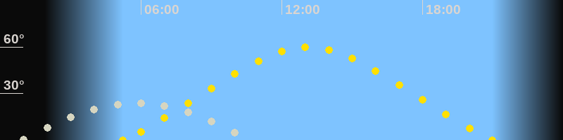 | Höchster Sonnenstand (Kulmination) | 13:06 Uhr (h = 59.7°) |