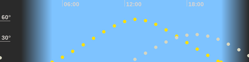 | Höchster Sonnenstand (Kulmination) | 13:09 Uhr (h = 62.1°) |