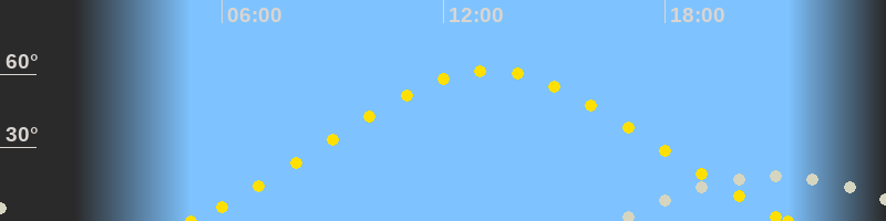 Höchster Sonnenstand (Kulmination)13:15 Uhr (h = 61.5°)