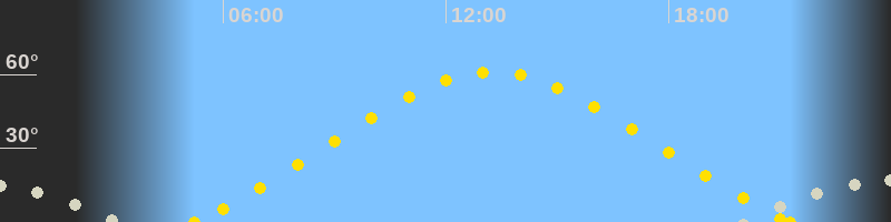| Höchster Sonnenstand (Kulmination) | 13:16 Uhr (h = 61°) |