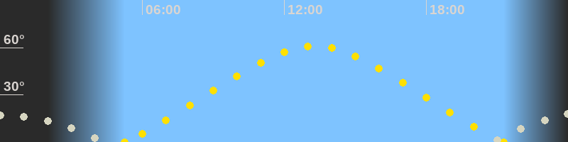Höchster Sonnenstand (Kulmination)13:16 Uhr (h = 60.9°)
