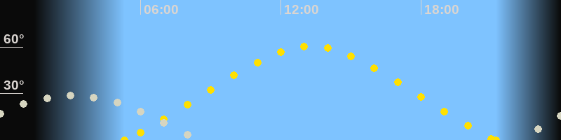 | Höchster Sonnenstand (Kulmination) | 13:16 Uhr (h = 60.4°) |